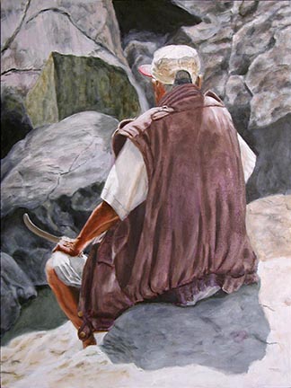 Man Resting on Rock in Sri Lanka Oil on Canvas 30"x24", 2015 |