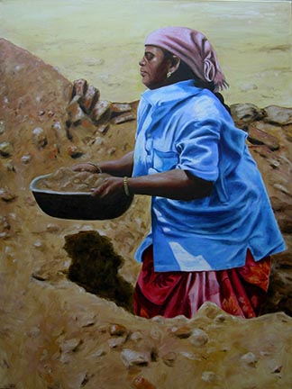 Looking for Gold in Sri Lanka 2 Oil on Canvas 24"x18", 2014 |