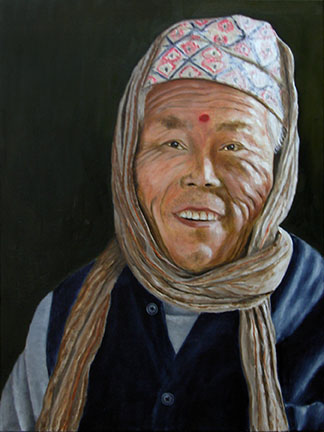Old Woman Laughing in Nepal Oil on Canvas 24"x18", 2015 |