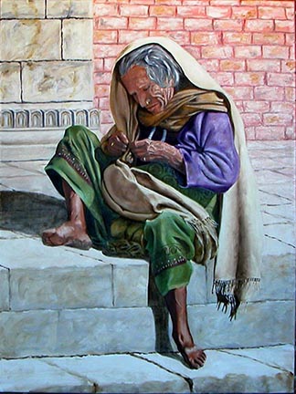 Nepalese Woman at Temple Oil on Canvas 32"x24", 2015 |