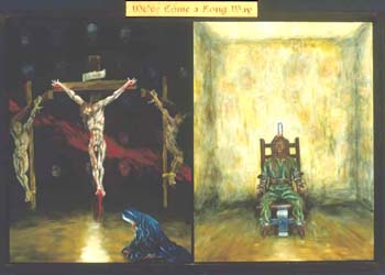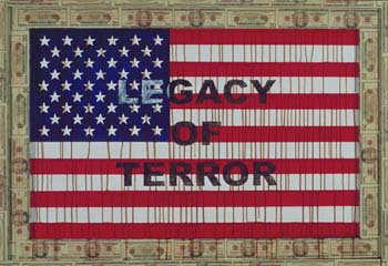 Legacy of Terror "33x47", 2002 acrylic, decoupage and blood on panel |