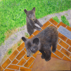 Baby Bears on my front porch 20"x23",2023 oil on canvas |