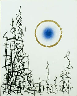 Evolution of the Sphere II pastel, charcoal and gold leaf 18"x24",2003 |