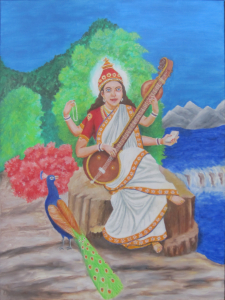 Saraswati, Indian Goddess of Art and Music oil on canvas 18"x24", 2024 |