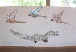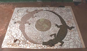 Mosaics done by kids in at the Environmental Police headquarters in Corumba, Mato Grosso do Sul, Brazil in November 2010