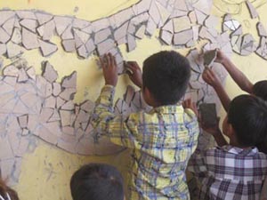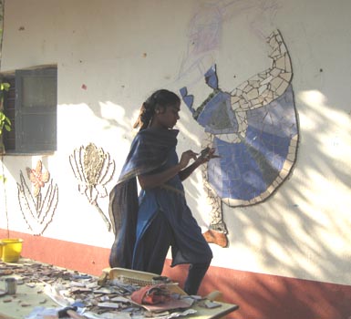 Mosaics done by kids at KALKI in Pondicherry, India in March 2012
