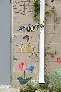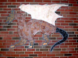 Mosaics done by students and aides in Mohawk High School during a week long workshop