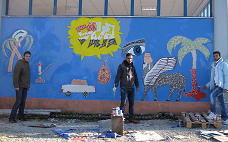 Mosaics done by refugees in Athens and in Ioannina Greece, December 2016