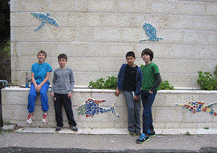 Mosaics done by kids at the school in Neve Shalom, Israel February 2015