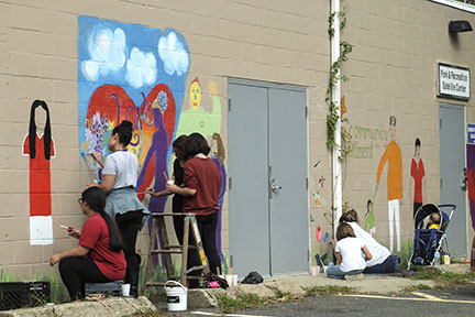 Wall of Life - community mosaic mural project on corner of Winter St. and Chestnut St.